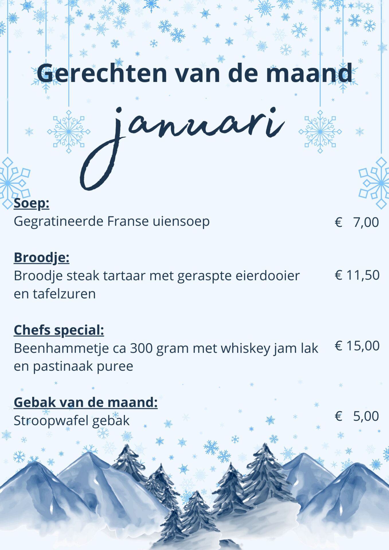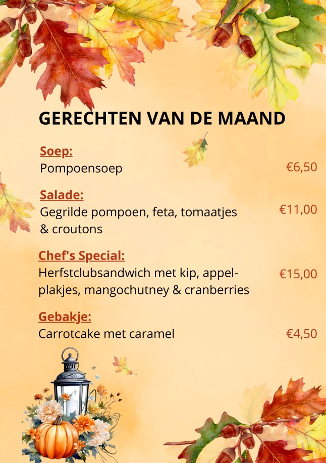 Iedere maand serveren we een wisselend aanbod van broodjes, soepen en gebak.